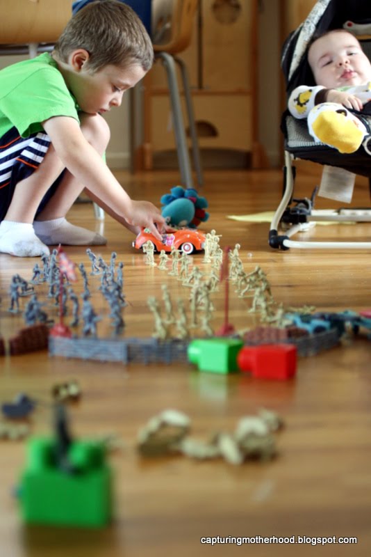 while i was at the pharmacy, i picked up a bucket of army guys for D