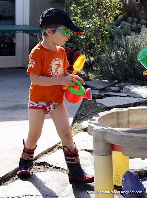 we made green lemonade. and i of course regretted that decision nearly four minutes after i handed a cup diluted with water to D. boy, was he was hyper!